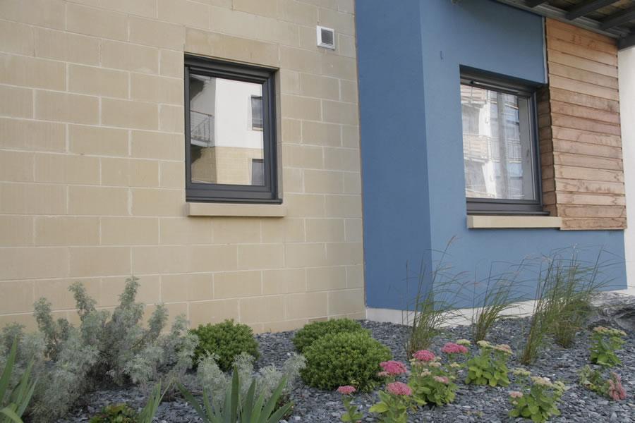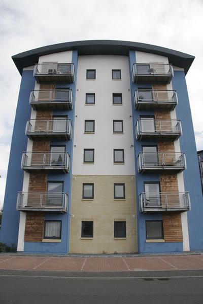 The design incorporated reconstituted stonework with coloured rendered panels on blockwork to 234 units within three separate blocks.